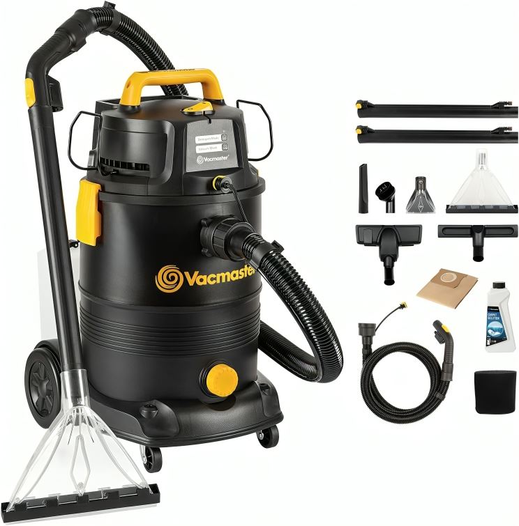 Powerful Motor: 5 peak HP† high-performance motor.3-in-1 Function: allows wet pick-up, dry pick-up and shampoo cleaning. Suitable for low-pile carpets, upholstered car seats, car mats, curtains and furniture